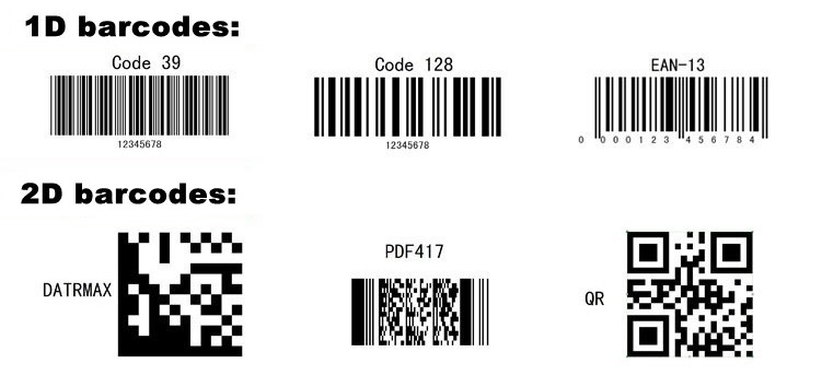 Barcode mempunyai beberapa jenis barcode yaitu yang dikenal saat ini adalah barcode linear 1D (1 dimensi/barcode batang) yang berupa rangkaian garis dengan ketebalan yang bervariasi dan berbentuk persegi panjang serta jenis barcode matriks 2D (2 dimensi/barcode
