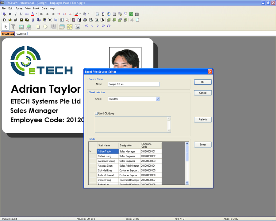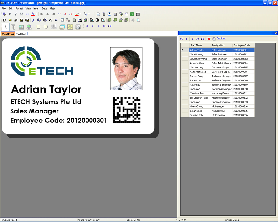 Manage the design and production of your plastic card with this flexible card design software. Based on our expertise in card printers, PESONA was developed for card printer users to create and print cards such as staff cards, membership cards and visitor IDs, equipped with data management. PESONA is available in 2 editions – Standard & Professional